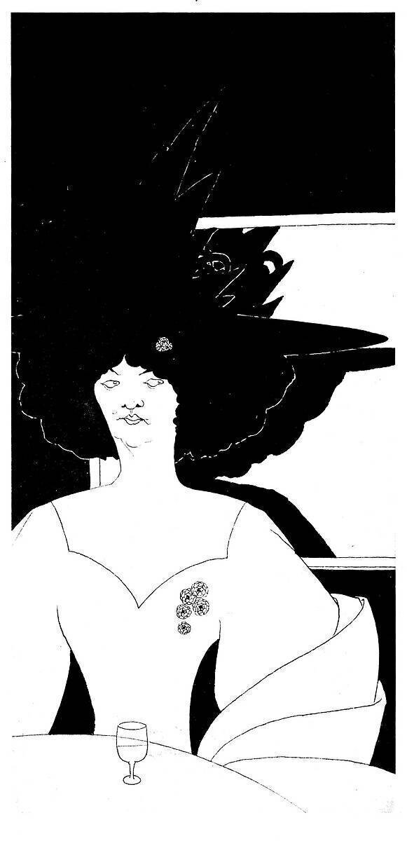 Keywords : 19th century, Art Nouveau, black and white, bar, black and white, brooch, coffee, drawing, engraving, expectation, glass, hat, illustration, restaurant, woman