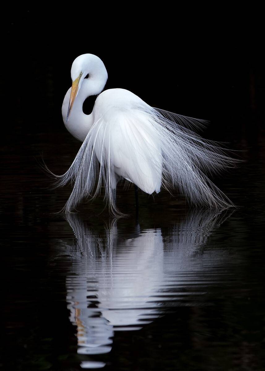 Keywords : animal, bird, black art, heron, mirror effect, photography, reflection, water