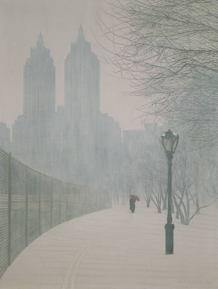 Subjects: UrbanKeywords: Hyperrealism, lake, loneliness, man, snow, standard lamp, umbrella(Ref : 226282) © Bridgeman Images