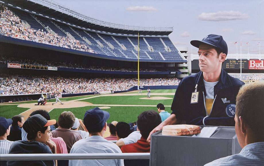 Subjects: SportKeywords: Athlete Collection, Hyperrealism, Olympics, Sport painting and drawing, USA, cape, food, man, seller, sport, stadium(Ref : 226249) © Bridgeman Images